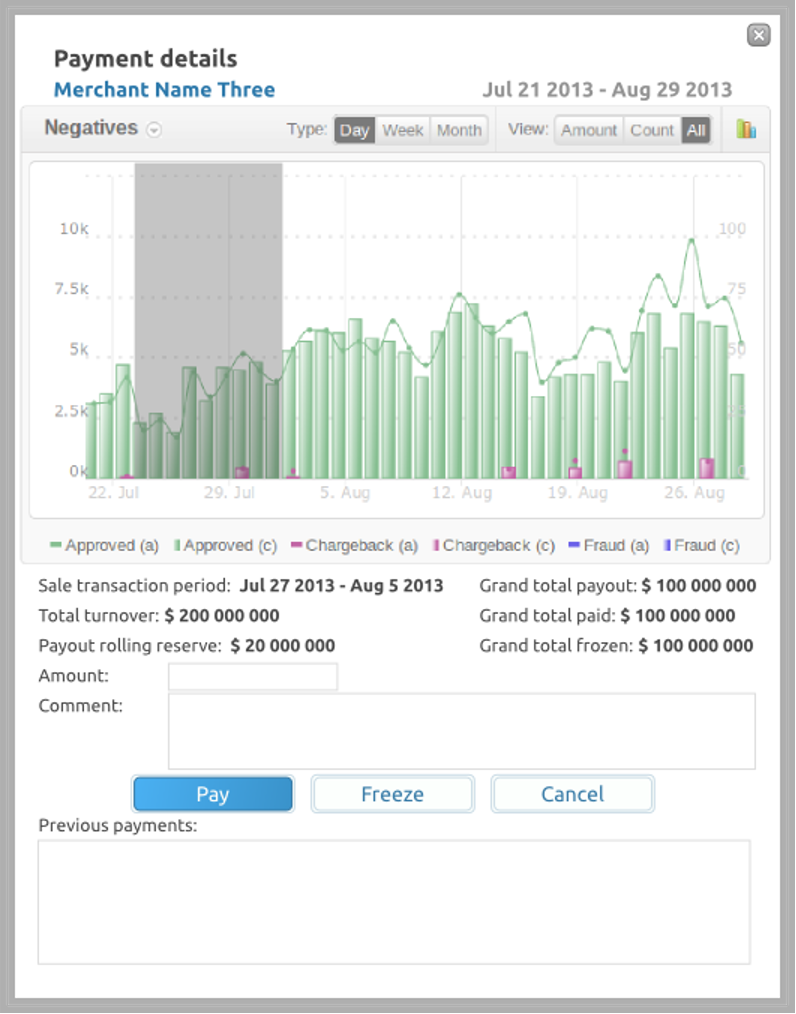 advanced search — for everyone except the merchant: the traffic of all merchants that included in this statement; for the merchant-directly the merchant; all taking into account the currency,