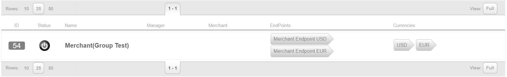 Endpoint group is an entity that combines several Endpoints or Master Endpoints with different currencies. The Endpoint Group simplifies the integration of a Merchant business to Anakatech Payment Gateway when working with multiple currencies. This screen allows to view configured Endpoint Groups and their IDs.
