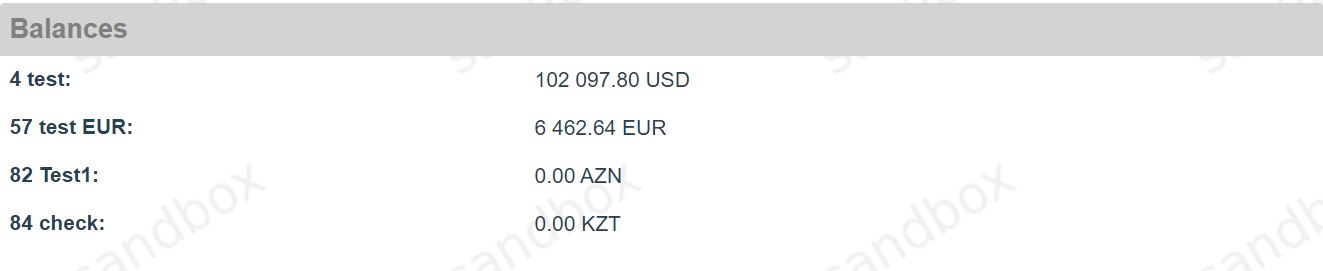 Each Connecting Party has a merchant user account created in Payment Gateway. Merchant accounts can check current balances via Common tab on Endpoints. Balances also can be requested via API by Endpoint or by Merchant.