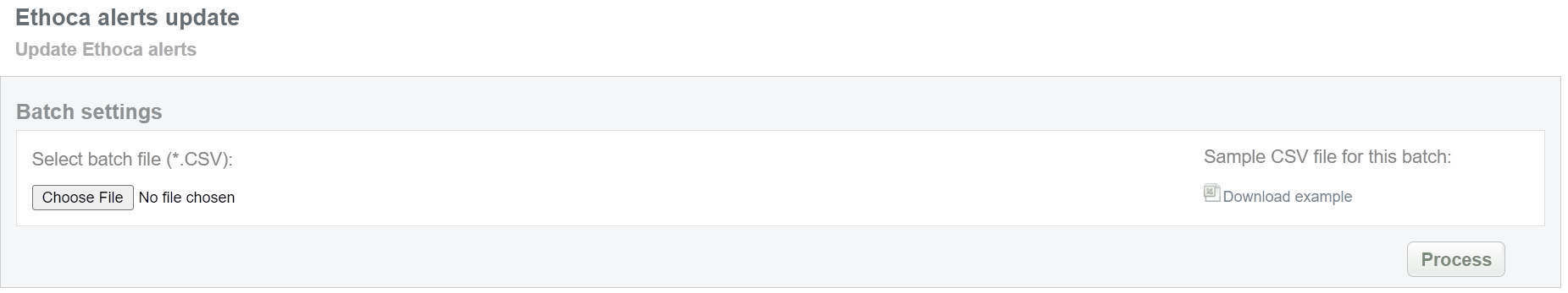 This batch operation can be useful for updating Ethoca statuses. Collect the order IDs, assigned by Anakatech system to the CSV file and upload it to send statuses to Ethoca system. An example of CSV file for upload is available on the same screen.