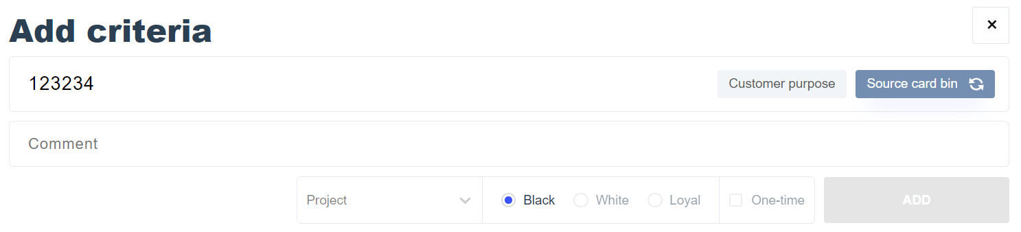 button. The type of the added criteria will be automatically identified. Ambiguous criteria type can be manually changed, as presented below. It is also possible to use