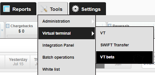 A Payout transaction is the disbursement of funds to a recipient account number, digital wallet or other type of account. The Merchant fills the payment data for receiver of funds directly on VT and initiates payout with “Process” button.